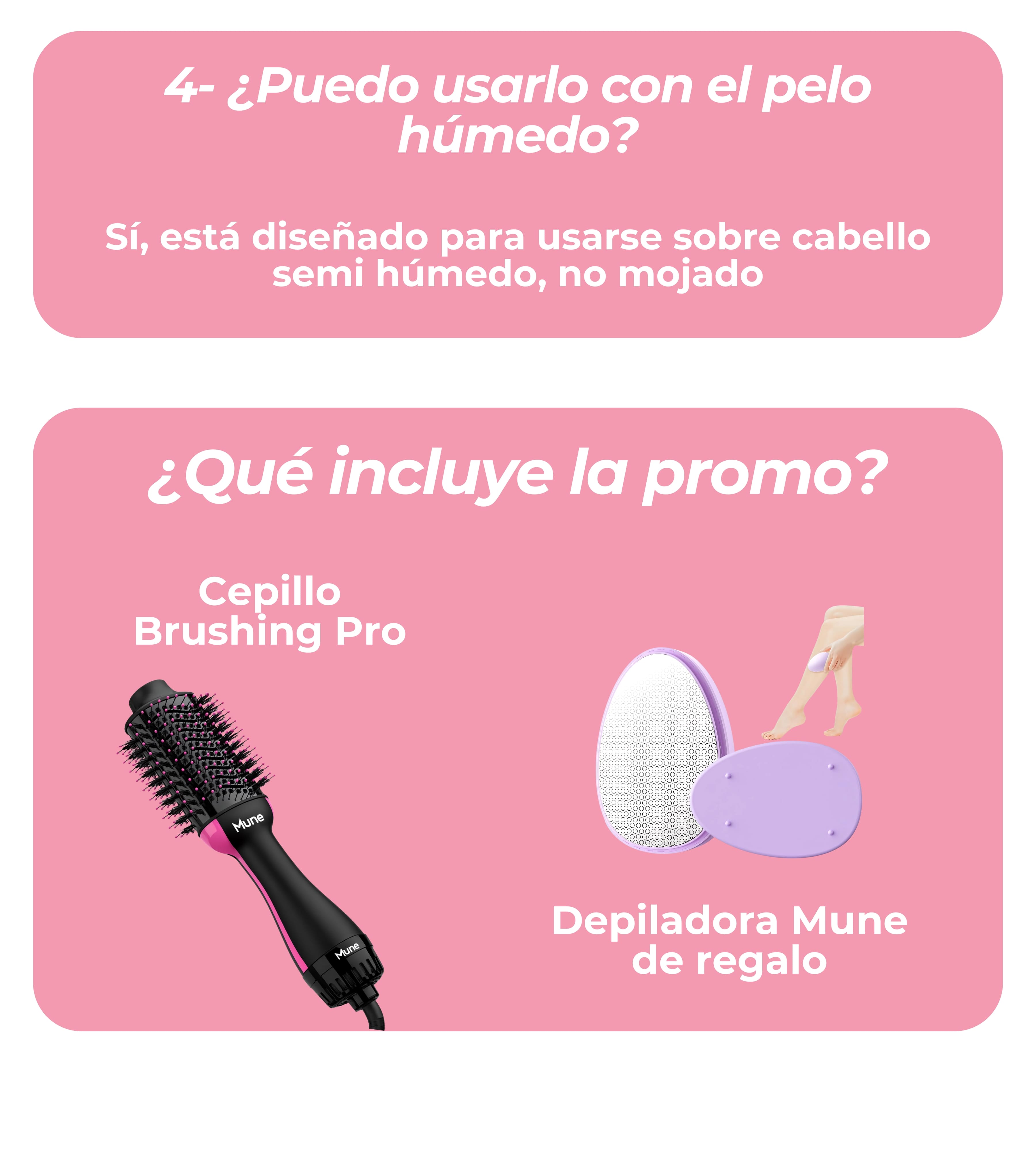 Cepillo Brushing Pro + Depiladora Mune de regalo - Tu rutina completa de belleza: cabello sin frizz + piel suave